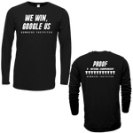 This Soft Tek Blend Long Sleeve Shirt is made of 4.2 oz 70% Polyester / 30% Cotton. It features moisture-managing interlock fabric and Fresh assurance with anti-bacterial treatment make this tee breathable and comfortable. Featuring the WE WIN GOOGLE US on the front and PROOF - CHAMPIONS on the back.