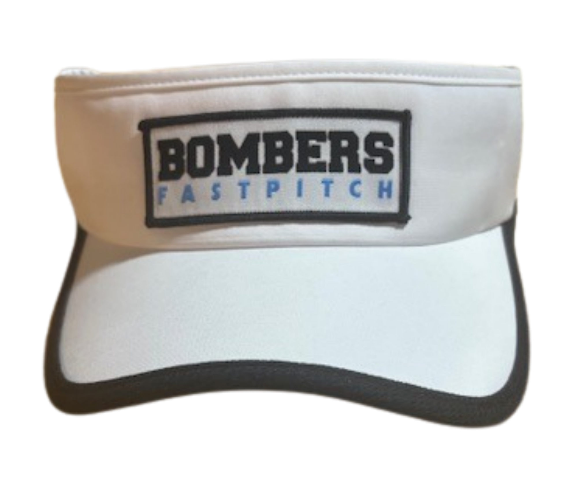 A moisture-wicking colorfast visor featuring the Bombers Fastpitch Label Patch.